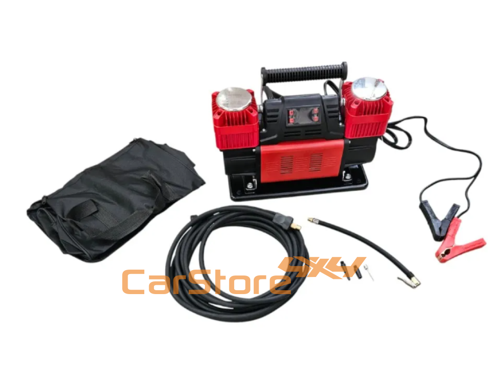 Partilhar Compressor Digital de 12V Bicylindro 300 L / min com controle inteligente + mangueira e saco de 8m :