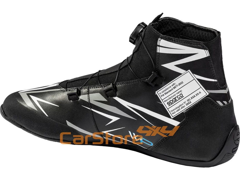 O sapato de kart K-Rapid WP da Sparco, homologado pela FIA 8877-2022, dispõe de uma membrana repelente à água que mantém os pés praticamente secos. O material superior em microfibra fina e o forro interior em malha respirável oferecem leveza excecional, ajuste ideal e elevado conforto de utilização.