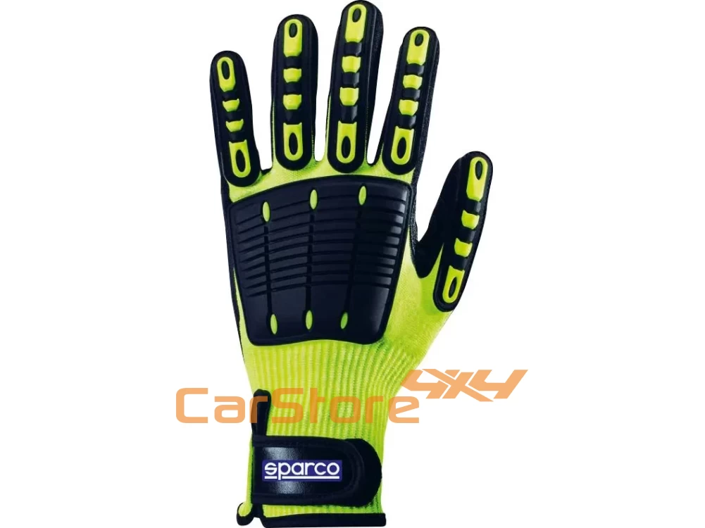 Luva de mecânico Sparco Sportac resistente a cortes com estrutura de superfície Adamant Diamond®. A parte superior da luva é reforçada com proteção em borracha. Palma revestida, resistente a gorduras.