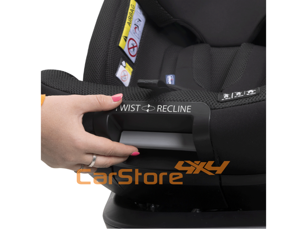 - Mais fácil de utilizar com o sistema Twist-Recline: a mesma pega para rodar e reclinar a cadeira auto.