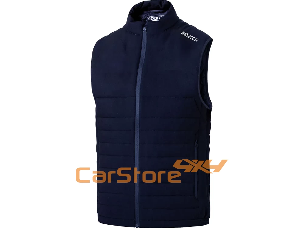 Colete acolchoado Sparco «GRIT» em material à prova de vento e repelente à água, com gola curta para uma proteção confortável. Os bolsos laterais com fecho de correr oferecem um espaço de arrumação prático e tornam o colete num companheiro versátil.