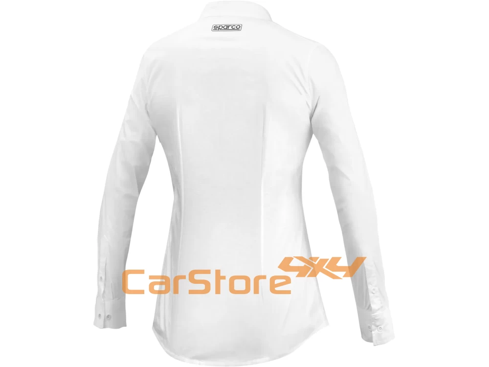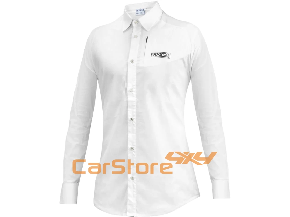 Camisa de manga comprida Sparco em popeline elástico. Bolso no peito com fecho oculto. Modelo feminino com corte cintado.