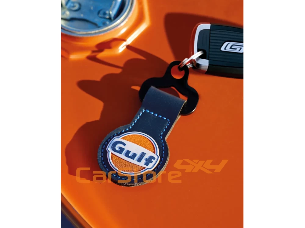 Porta-chaves com elegante cordão de couro no lendário estilo Gulf Racing.